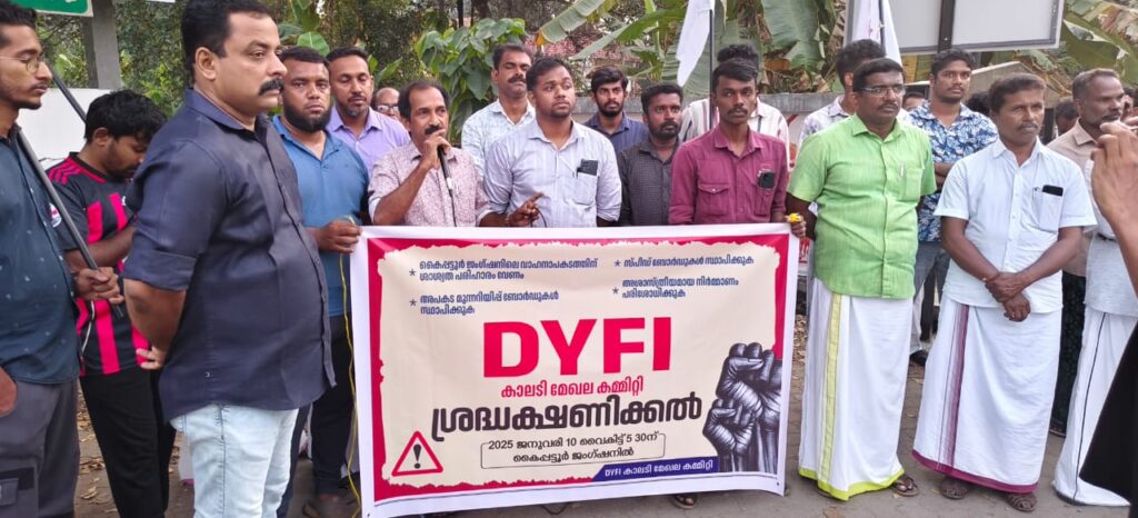 ശ്രദ്ധ ക്ഷണിക്കൽ സദസ്സ് സി.പി.ഐ.എം കാലടി ലോക്കൽ സെക്രട്ടറി ബേബി കാക്കശ്ശേരി ഉദ്ഘാടനം ചെയ്തു, ഡി.വൈ.എഫ്.ഐ കാലടി മേഖല പ്രസിഡൻ്റും കാലടി ഗ്രാമപഞ്ചായത്ത് അംഗവുമായ സി വി സജേഷ് അധ്യക്ഷത വഹിച്ചു, ഡി.വൈ.എഫ്.ഐ. കാലടി മേഖലാ സെക്രട്ടറി സ്റ്റാലിൻ എം എസ് സ്വാഗതം പറഞ്ഞു, അങ്കമാലി ബ്ലോക്ക് പഞ്ചായത്തംഗം സിജോ ചൊവ്വരാൻ, കാലടി ഗ്രാമപഞ്ചായത്ത് അംഗം സജീവ് കാലടി ഫാർമേഴ്സ് സർവീസ് സഹകരണ ബാങ്ക് വൈസ് പ്രസിഡൻറ് അഡ്വക്കേറ്റ് എം വി പ്രദീപ് എന്നിവർ സംസാരിച്ചു ഡിവൈഎഫ്ഐ കാലടി മേഖല ട്രഷറർ സഖാവ് ഷിൻ മാത്യൂ നന്ദി പറഞ്ഞു