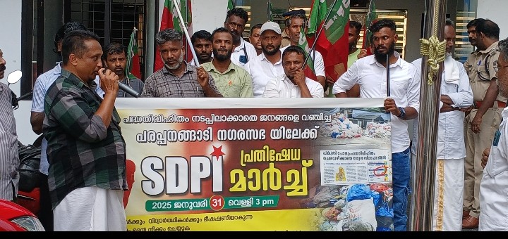 പരപ്പനങ്ങാടി :പദ്ധതിവിഹിതം നടപ്പിലാക്കുന്നതിൽ വീഴ്ച വരുത്തിയതിനും, ഗ്രാമീണ റോഡുകളുടെ ശോചനീയാവസ്ഥക്കും , മാലിന്യ സംസ്കരണത്തിലെ വീഴ്ചക്കും ,പ്രാഥമിക ആരോഗ്യ കേന്ത്രങ്ങളിലെ ശോചനീയാവസ്ഥക്കുമെതിരെ എസ്.ഡി.പി.ഐ. പരപ്പനങ്ങാടി മുൻസിപ്പൽ കമ്മിറ്റിയുടെ നേതൃത്വലാണ് മാർച്ച്.