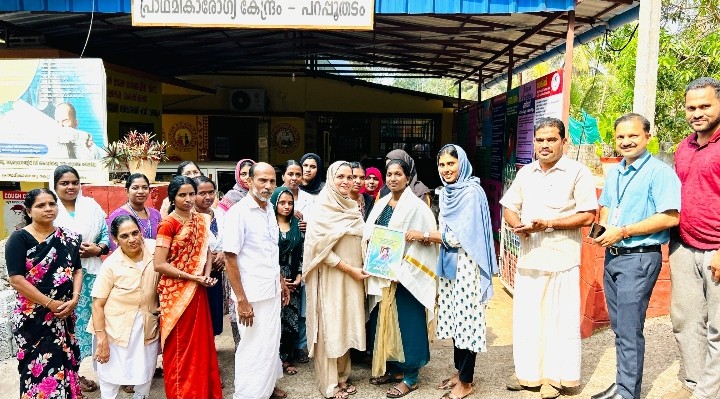 വനിതാ ദിനത്തിൻ്റെ ഭാഗമായി പരിരക്ഷ നഴ്സ് സി അനിതയെ ചെറിയമുണ്ടം ഗ്രാമ പഞ്ചായത്ത് പ്രസിഡന്റ് മൈമൂന യൂസഫ് ഉപഹാരം നൽകി ആദരിക്കുന്നു.