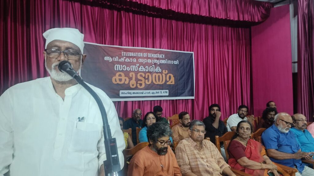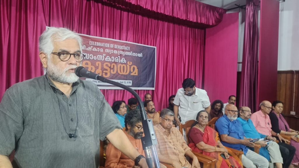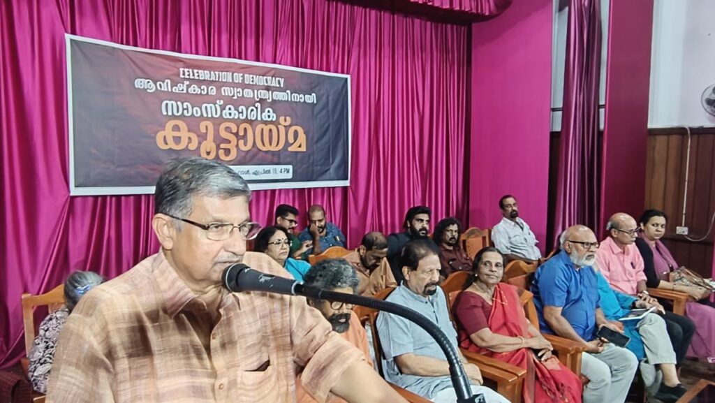 സാംസ്കാരിക മേഖലയിലേക്കുള്ള ഭരണകൂട കടന്നുകയറ്റത്തിനെതിരെ സാഹിത്യ അക്കാദമിയിൽ സംഘടിപ്പിച്ച സാംസ്കാരിക കൂട്ടായ്മ ഉദ്ഘാടനം ചെയ്ത് സംസാരിക്കുകയായിരുന്നു അദ്ദേഹം. ദേശീയതയെന്ന പേരിൽ നിഷേധാത്മക ദേശീയത സൃഷ്ടിക്കുകയാണവർ. റിപ്പബ്ലിക് എന്ന് പറയാൻ കഴിയാത്ത വിധം രാജ്യത്തിന്റെ നില മാറിയിരിക്കുന്നു.എംബുരാൻ സിനിമ പോലെ തങ്ങൾക്ക് സഹിക്കാൻ കഴിയാത്ത എല്ലാ കലാരൂപങ്ങളെയും അവർ ഇല്ലായ്മ ചെയ്യുമെന്ന് അദ്ദേഹം പറഞ്ഞു. അഡ്വ. വി ഡി പ്രേം പ്രസാദ് അധ്യക്ഷത വഹിച്ചു.