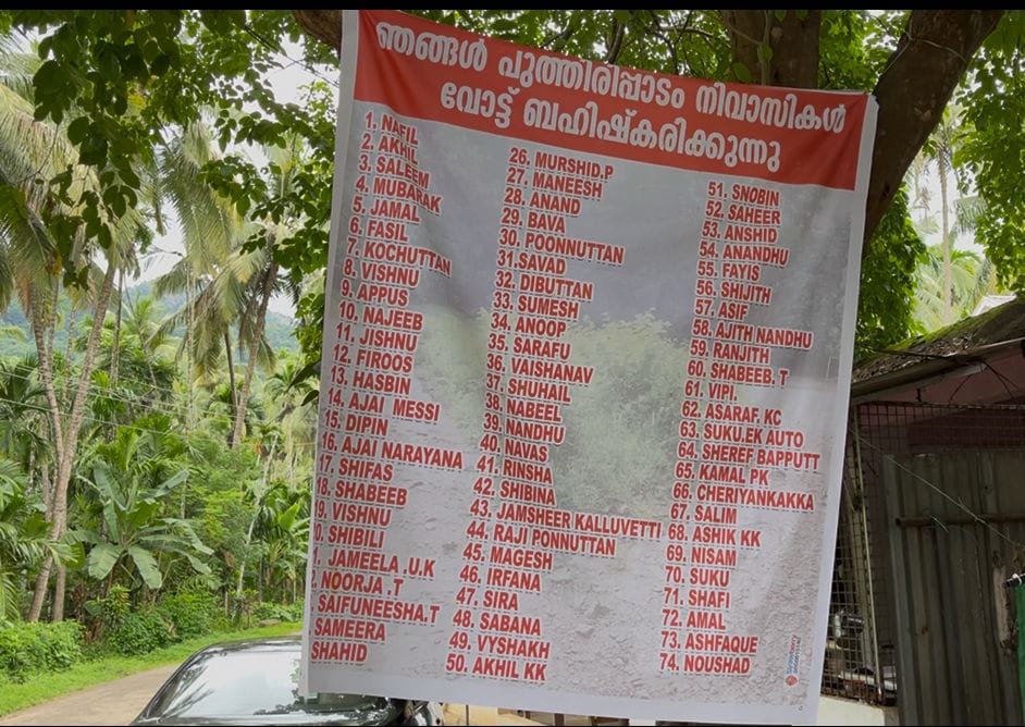 നിലമ്പൂർ: വഴിക്കടവ് പഞ്ചായത്തിലെ പുത്തിരിപ്പാടത്ത് യുവാക്കൾ ഇലക്ഷൻ ബഹിഷ്ക്കരണവുമായി രംഗത്ത്, മാറി മാറി വരുന്ന ജനപ്രതിനിധികൾ ജനങ്ങളുടെ ആവശ്യങ്ങൾ നിരസിക്കുകയും തെരഞ്ഞെടുപ്പാകുമ്പോൾ വാഗ്ദാനങ്ങളുമായി രംഗത്തെത്തുകയും ചെയ്തതിനെ തുടർന്നാണ് ഇലക്ഷൻ ബഹിഷ്ക്കരണ ഫ്ലക്സുമായി യുവാക്കൾ രംഗത്തെത്തിയത് .
