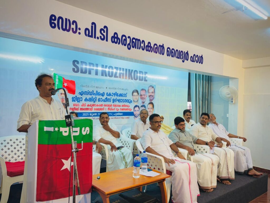 കോഴിക്കോട് : എസ്ഡിപിഐ കോഴിക്കോട് ജില്ല കമ്മിറ്റിയുടെ പുതിയ ഓഫീസ് ഡോ: പി ടി കരുണാകരൻ വൈദ്യർ മന്ദിരം സംസ്ഥാന പ്രസിഡണ്ട് സിപിഎ ലത്തീഫ് ഉദ്ഘാടനം ചെയ്തു. ജില്ലാ പ്രസിഡണ്ട് മുസ്തഫ കൊമ്മേരി അധ്യക്ഷത വഹിച്ചു. സംസ്ഥാന വൈസ് പ്രസിഡണ്ട് പി അബ്ദുൽ ഹമീദ്, സംസ്ഥാന ട്രഷറർ എൽ കെ റഷീദ് ഉമരി , എസ്ഡിടിയു സംസ്ഥാന പ്രസിഡൻ്റ് എ വാസു, വിമൻ ഇന്ത്യ മൂവ്മെൻറ് സംസ്ഥാന സെക്രട്ടറി കെ കെ ഫൗസിയ , കെ ജലീൽ സഖാഫി, ശ്രീജിത്ത് കുമാർ, ഫൈറൂസ പി ഇ , റംഷീന ജലീൽ, നവാസ് കല്ലേരി, ഇബ്രാഹിം തലായി, എം കെ സഖരിയ്യ, ടി പി യൂസുഫ്, അഷ്റഫ് കുട്ടിമോൻ, ടി പി മുഹമ്മദ്, നിസാർ ചെറുവറ്റ, കെ പി ജയഫർ, എം.എ സലീം സംസാരിച്ചു. എസ്ഡിപിഐ ജില്ലാ ജനറൽ സെക്രട്ടറി കെ ഷെമീർ സ്വാഗതം ട്രഷറർ കെ.കെ നാസർ മാസ്റ്റർ നന്ദിയും പറഞ്ഞു.