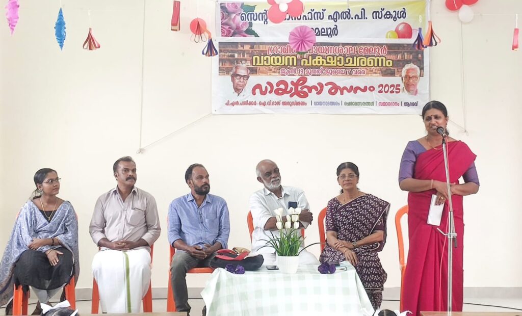 മേലൂർ ഗ്രാമീണവായനശാല വായന പക്ഷാചരണത്തിൻ്റെ ഭാഗമായി ജൂൺ 19 മുതൽ ജൂലൈ 7 വരെ വായനോത്സവം -2025 എന്ന പേരിൻ മേലൂരിലെ പഞ്ചായത്തിലെ സ്കൂളുമായി ചേർന്ന് രചനാ മത്സരങ്ങൾ അടക്കമുള്ള പരിപാടികൾ സംഘടിപ്പിച്ചുവരികയാണ് ഇതിൻ്റെ ഭാഗമായി മേലൂർ സെൻറ് ജോസ്ഫ് എൽ .പി.സ്കൂളിൽ “കാവ്യ മഥുനം ” എന്ന കുട്ടികളോടൊത്തുള്ള കവിയത്രിയുടെ കാവ്യസല്ലാപ പരിപാടി സംഘടിപ്പിച്ചു.