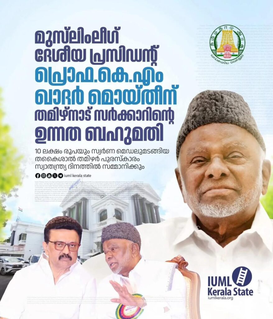 ദേശീയ പ്രസിഡന്റ് പ്രൊഫ. കെ.എം ഖാദർ മൊയ്തീന് തമിഴ്‌നാട് സർക്കാറിന്റെ ഉന്നത ബഹുമതി.
