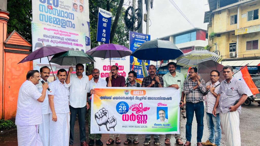 മലപ്പുറം :ഹയർ സെക്കൻഡറിയോടുള്ള വിവേചനത്തിൽ പ്രതിഷേധിച്ച് കേരളത്തിലെ മുഴുവൻ ജില്ലകളിലും നടത്തിയ പ്രതിഷേധ ധർണ്ണയുടെ ഭാഗമായി മലപ്പുറം കലക്ടറേറ്റ് പടിക്കലിൽ എഎച്ച് എസ് ടി എ നേതാക്കൾ ധർണ്ണ നടത്തി.വീക്ഷണം മുഹമ്മദ് ഉദ്ഘാടനം ചെയ്തു.പി ഇഫ്തിഖാറുദ്ദീൻ അധ്യക്ഷത വഹിച്ചു.സംസ്ഥാന ഭാരവാഹികളായമനോജ് ജോസ്, യു.ടി അബൂബക്കർ, രഞ്ജിത്ത് വി.കെ , ഡോ: പ്രവീൺ, ഡോ: പ്രദീപ് കുമാർ കറ്റോട്, എം.ടി മുഹമദ്, ഡോ: കെ.കെ രാജേഷ്, ജാബിർ പാണക്കാട് കെ. ത്വയ്യിബ് , സജർ എം , എന്നിവർ പ്രസംഗിച്ചു.