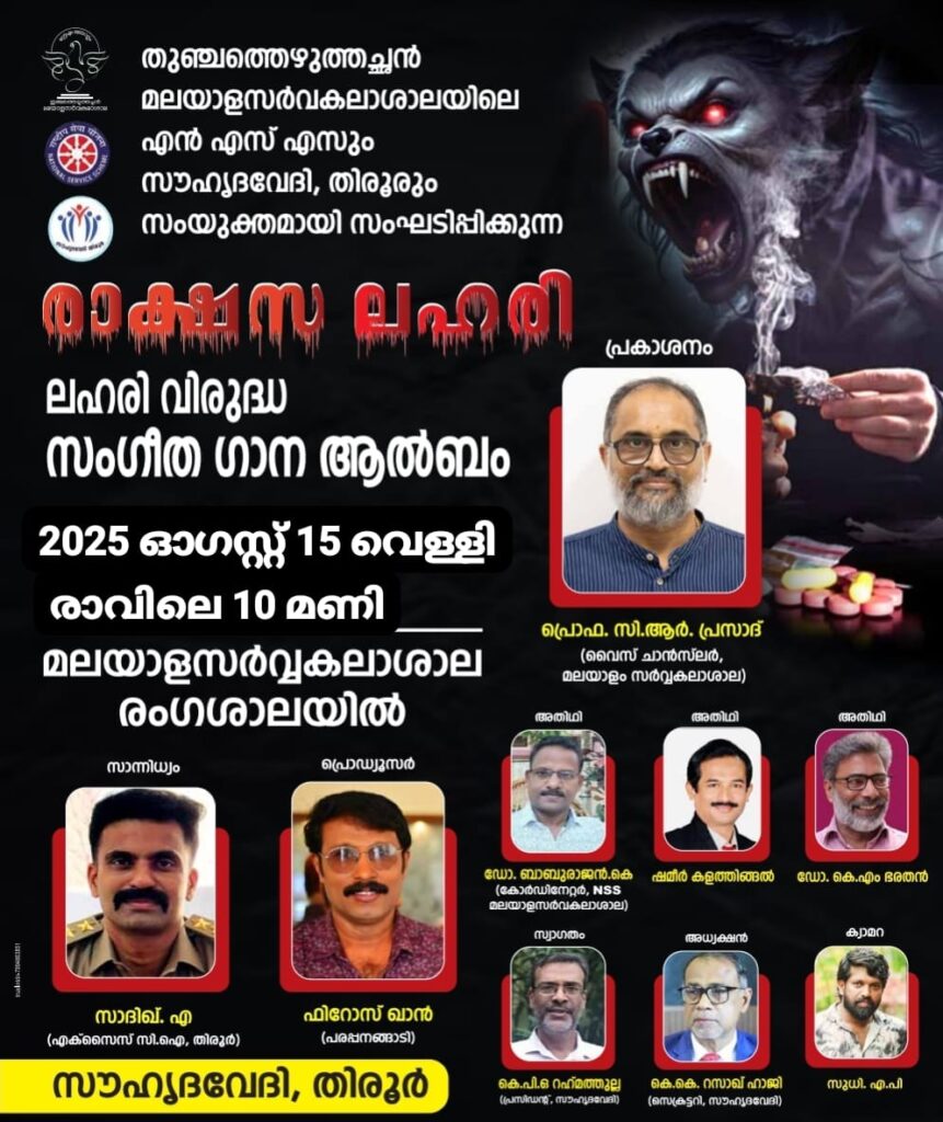 ആഗസ്റ്റ് 15 വെള്ളിയാഴ്ച്ച രാവിലെ 10 മണിക്ക് തിരൂര് മലയാളം സര്വ്വകലാശാലയിലാണ് രാക്ഷസ ലഹരി എന്ന ആല്ബത്തിന്റെ പ്രകാശനം. ഇന്ന് സമൂഹത്തെ മുച്ചൂടും കാര്ന്നു തിന്നുന്ന ലഹരി വിപത്തിനെതിരെ ഗാനങ്ങളും ഹൃസ്വ ചിത്രങ്ങളും ചേര്ന്നൊരുക്കുന്ന ചേതോഹരമായ ആല്ബമാണ് രാക്ഷസ ലഹരി. നമുക്ക് ചുറ്റും ലഹരി ഉപയോഗിക്കുന്നവര് സാധാരണ ചെയ്തുവരുന്ന എല്ലാ കാര്യങ്ങളും ഈ ആല്ബത്തിലുണ്ട്. ലഹരി സൃഷ്ടിക്കുന്ന എല്ലാ സാമൂഹ്യ വിപത്തിന്റെയും നേര് ചിത്രമാണ് ഇത് വരച്ചുകാട്ടുന്നത്. രാക്ഷസ ലഹരി മനുഷ്യരുടെ ഹൃദയങ്ങളോ'ടാണ് സംവദിക്കുന്നത്. ചെറിയ ഗാനങ്ങളിലൂടെ, സംഭവ ചിത്രങ്ങളിലൂടെ ലഹരിയെ തുരത്താന് ഫിറോസിന്റെ ആല്ബം സമൂഹത്തിന് കരുത്തേകുന്നു. ഇന്നിന്റെ ബോധവല്ക്കരണമാണ് ഫിറോസ് ഇതിലൂടെ സാധിച്ചിരിക്കുന്നത്.ലഹരിയെ തുരത്താന് സര്ഗ്ഗാത്മകമായ മഹത്തായ ഇടപെടലാണ് ഈ ആല്ബം. സമൂഹത്തിന് വലിയ സന്ദേശം കൂടിയാണ് രാക്ഷസ ലഹരി നല്കുന്നത്. പ്രഭാഷണത്തേക്കാളേറെ മനസ്സിനെ സ്വാധീനിക്കാന് ഗാനങ്ങള്ക്ക് കഴിയുമെന്ന് ഈ ആല്ബം നമ്മെ ബോധ്യപ്പെടുത്തുന്നു.