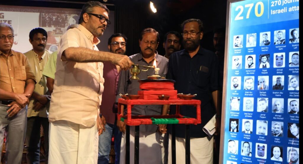 ഗാസയിൽ കൊല്ലപ്പെട്ട 270 മാധ്യമ പ്രവർത്തകർക്ക് അഭിവാദ്യമർപ്പിച്ച് അവരുടെ ചിത്രങ്ങൾക്കു മുന്നിൽ ദീപം തെളിയിച്ചാണ് മന്ത്രി ഉദ്ഘാടനം നിർവഹിച്ചത്.