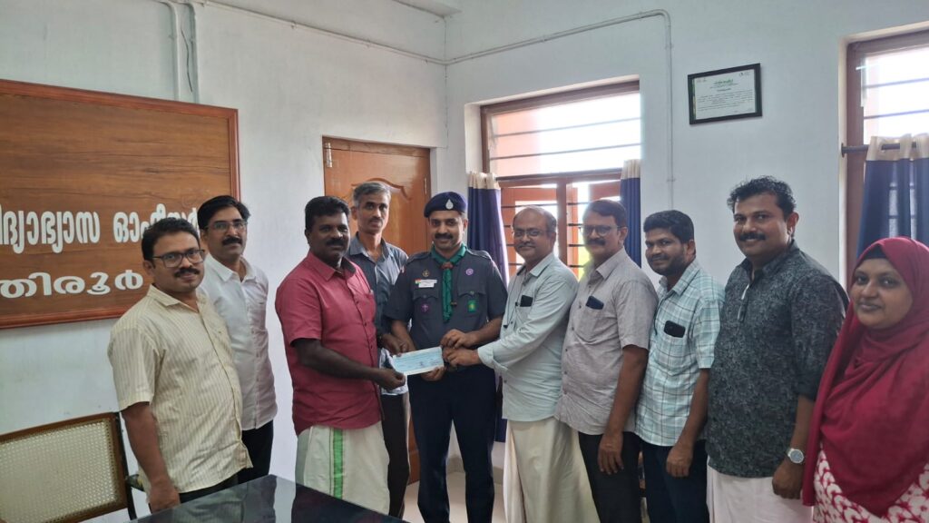 തിരൂർ: കൊല്ലം തേവലക്കരയിലെ സ്കൂളിൽ ഷോക്കേറ്റ് മരിച്ച മിഥുന്റെ കുടുംബത്തിന് കേരള സംസ്ഥന സ്കൗട്ട്സ് ആൻ്റ്ഗൈഡ്സ് നിർമ്മിച്ചു നൽകുന്ന ഭവന നിർമ്മോണ ഫണ്ടിലേക്ക് തിരൂർ ജില്ല അസോസിയേഷൻ രണ്ടേകാൽ ലക്ഷം രൂപ കൈമാറി. ജില്ല ചീഫ് കമ്മീഷണറും തിരൂർ ജില്ല വിദ്യാഭ്യാസ ഓഫീസറുമായ ആർ.പി. ബാബുരാജിനാണ് ഫണ്ട് കൈമാറിയത്.പി. എ. എസ്. ആർ കൃഷ്ണദാസ്, സൂപ്രണ്ട് വേണുഗോപാൽ, എം മൻസൂർഷാ, ജില്ല സെക്രട്ടറി പി. ജെ അമീൻ, ട്രഷറർ കെ. കൃഷ്ണകുമാർ, ഓർഗനൈസിംഗ് കമ്മീഷണർ ജിബി ജോർജ്, ടി. അബ്ദുൽ ജലീൽ, വി.ടി. അബ്ദുറഹ്മാൻ, കെ. സൈന എന്നിവർ ചടങ്ങിൽ പങ്കെടുത്തു. മാതൃകാപരമായ പ്രവർത്തനത്തിന് നേതൃത്വം നൽകിയ ജില്ലയിലെ യൂണിറ്റ് ലീഡർമാരെ ജില്ല ചീഫ് കമ്മീഷണർ ആർ പി . ബാബുരാജൻ അഭിനന്ദിച്ചു.