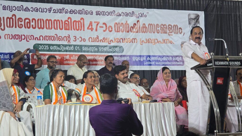 മലപ്പുറം: യു. ഡി. എഫ്. സർക്കാർ അധികാരത്തിൽ വന്നാൽ എൽ . ഡി എഫ് . സർക്കാരിൻ്റെ തെറ്റായ മദ്യനയം തിരുത്തുമെന്നും തദ്ദേശ സ്വയം ഭരണ സ്ഥാപനങ്ങളുടെ മദ്യ നിയന്ത്രണാധികാരം തിരിച്ച് നൽകുക , സ്കൂൾ തലം മുതൽക്കേ പാഠപുസ്തങ്ങളിൻ ലഹരി വിരുദ്ധ ഭാഗങ്ങൾ ഉൾപ്പെടുത്തുക എന്നീ മദ്യനിരോധനസമിതി ആവശ്യങ്ങൾ അംഗീകരിച്ച് നടപ്പിലാക്കുമെന്നും പ്രതിപക്ഷ നേതാവ് അഡ്വ. വി.ഡി. സതീശൻ പ്രഖ്യാപിച്ചു. മലപ്പുറം ടൗൺ ഹാളിൽ നടന്ന കേരള മദ്യനിരോധന സമിതിയുടെ നാൽപ്പത്തിയേഴാം സംസ്ഥാന സമ്മേളനം ഉദ്ഘാടനം ചെയ്ത് പ്രസംഗിക്കുകായിരുന്നു അദ്ദേഹം. മദ്യവും ഇതര ലഹരികളും അനേകം കുടുംബങ്ങളെ പട്ടിണിയിലേക്ക് തള്ളിയിടുന്നുവെന്നും മക്കൾ മാതാപിതാക്കളെ കൊല്ലുന്ന അതിക്രൂരമായ അനേകം സംഭവങ്ങൾ അടുത്ത കാലത്ത് കൂടിവരികയാണെന്നും അദ്ദേഹം പറഞ്ഞു. ഘട്ടം ഘട്ടമായി ലഹരി ഉപയോഗം കുറയ്ക്കുമെന്ന് വാഗ്ദാനം നല്കിയ ഇടത് പക്ഷ സർക്കാർ, ചെയ്തത് ഘട്ടം ഘട്ടമായി മദ്യവില്പന വർദ്ധിപ്പിക്കുകയാണ്. മദ്യവിൽപ്പനകൊണ്ട് വരുമാനം കൂടില്ലെന്നും മറിച്ച് ചികിൽസയ്ക്കും ക്രമസമാധാന പാലനത്തിനും ചെലവ് കൂടുമെന്നും സർക്കാരിൻ്റെ വരുമാനം വർധിപ്പിക്കാൻ മറ്റു നിരവധി മാർഗ്ഗങ്ങളുണ്ടെന്നും അദ്ദേഹം പറഞ്ഞു.