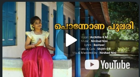 തിരൂർ. ഓണത്തിന് തയ്യാറാക്കിയ നാലു മിനിറ്റ് ദൈർഘ്യമുള്ള പൊന്നോണ പുലരി സംഗീത ആൽബം പുറത്തിറങ്ങി.ഷോർണൂർ കൂനത്തറ സ്വദേശി കെ എം അർച്ചിതയും 20 കൂട്ടുകാരും ആണ് ഇതിൽ അഭിനയിച്ചിട്ടുള്ളത്. തിരൂരിൽ വെച്ച് ചിത്രീകരിച്ച ഈ സംഗീത ആൽബത്തിന്റെ ക്യാമറയും എഡിറ്റിംഗ് നിർവഹിച്ചിട്ടുള്ളത് സി എസ് സിജിത്താണ്. കെ. എം. അർച്ചിത പാടിയ വരികൾക്ക് ഛായാഗ്രഹണം നിർവഹിച്ചിട്ടുള്ളത് നിർഷാദ് ആണ് . പാട്ടുകളുടെ രചന നിർവഹിച്ചിട്ടുള്ളത് ബഷീറാണ്.