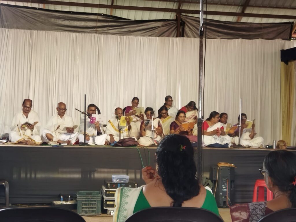 തിരൂർ :തെക്കുമുറി ശ്രീ പാട്ടുപറമ്പ് ഭഗവതിക്കാവ് ക്ഷേത്രത്തിൽ നവരാത്രി മഹോത്സവത്തോടനുബന്ധിച്ച് സായി വേദ വാഹിനി പരിഷത്ത് സംഘടിപ്പിച്ച സമൂഹ വേദ പാരായണം നടന്നു. പരിപാടിക്ക് ക്ഷേത്ര സമിതി പ്രസിഡണ്ട് കിഴക്കാത്ത് സുരേഷ് ബാബു,ക്ഷേത്ര സമിതി സെക്രട്ടറി പി പി മണികണ്ഠൻ തുടങ്ങി നിരവധി ഭക്തജനങ്ങളും ക്ഷേത്രസമിതി അംഗങ്ങളും പങ്കെടുത്തു.