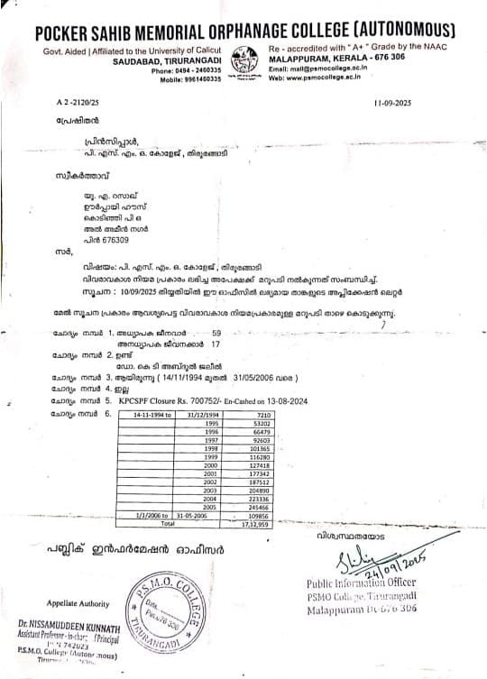 തിരൂരങ്ങാടി: മുന് ഉന്നത വിദ്യാഭ്യാസ വകുപ്പ് മന്ത്രിയും തവനൂര് എം.എല്.എയുമായ ഡോ.കെ.ടി. ജലീലിനെതിരെ പുതിയ സാമ്പത്തിക ക്രമക്കേട് പുറത്ത്. എം.എല്.എയായിരിക്കെ തിരൂരങ്ങാടി പി.എസ്.എം.ഒ കോളേജില് നിന്നും അധ്യപക ശമ്പളവും കൈപറ്റിയതായി ആരോപണം. തിരൂരങ്ങാടി മണ്ഡലം മുസ്്ലിം യൂത്ത്ലീഗ് പ്രസിഡന്റ് യു.എ റസാഖ് നല്കിയ വിവരാവകാശ അപേക്ഷക്ക് നല്കിയ മറുപടിയിലാണ് 2006 മെയ് മാസത്തെ ശമ്പളം കോളേജില് നിന്നും കൈപറ്റിയതായി രേഖയുള്ളത്. ഇതോടെ ലഭ്യമായ രേഖകള് പ്രകാരം ജലീല് 2006 മെയ് മാസത്തില് ഒരേസമയം എം.എല്.എ ശമ്പളവും പി.എസ്.എം.ഒ കോളേജിലെ അധ്യാപക ശമ്പളവും കൈപ്പറ്റിയതായി തെളിയുകയാണ്. ഡോ. ജലീല് 2006 മെയ് 24-ന് കേരള നിയമസഭാംഗമായി സത്യപ്രതിജ്ഞ ചെയ്യുന്നത്. എന്നാല് അതിന് ശേഷമുള്ള മെയ് 31 വരെയുള്ള അധ്യാപക ശമ്പളം അദ്ദേഹം സ്വീകരിച്ചതായി രേഖകള് സൂചിപ്പിക്കുന്നു. ഇതിലൂടെ നിയമസഭാ അംഗമായതിനു ശേഷവും ഒരു എയ്ഡഡ് കോളേജിലെ അധ്യാപകനായ നിലയില് ശമ്പളം വാങ്ങിയതായി വ്യക്തമായിരിക്കുന്നത്.