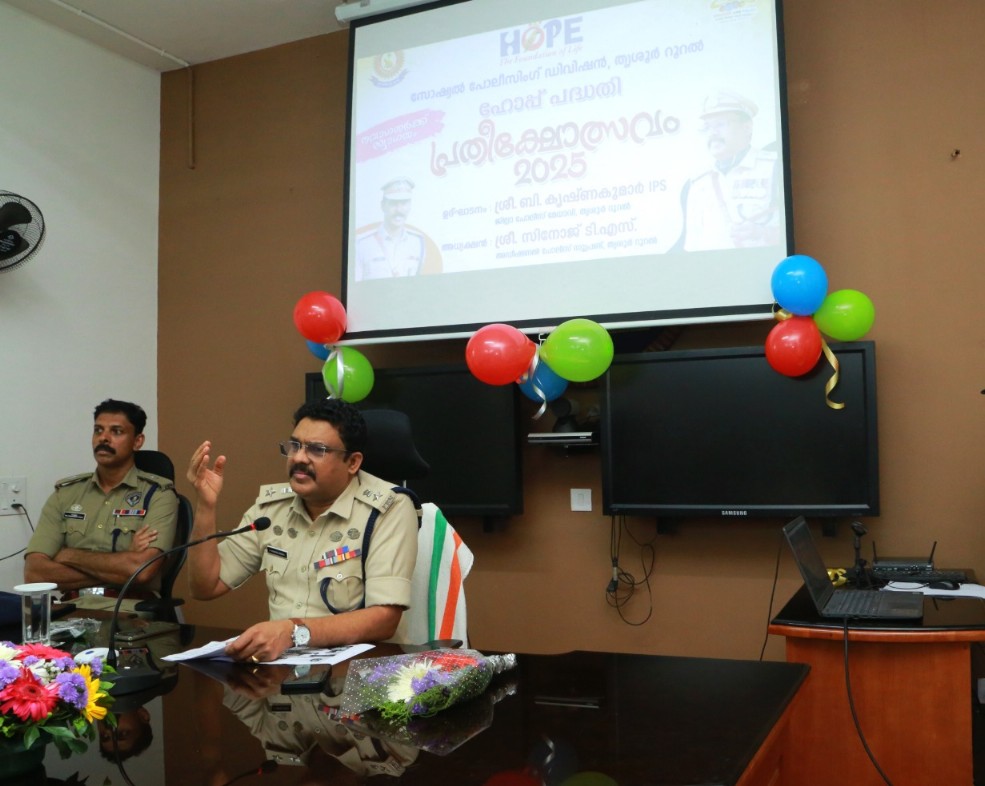ഇരിങ്ങാലക്കുട: തൃശൂർ റൂറൽ പോലീസിൻെറ ഹോപ്പ് പദ്ധതിയുടെ 2025-26 അധ്യയന വർഷത്തിലെ പുതിയ ബാച്ചിൻെറ പ്രവർത്തന ഉദ്ഘാടനം 18.10.2025 തിയതി ഇരിങ്ങാലക്കുട തൃശൂർ റൂറൽ ജില്ലാ പോലീസ് ആസ്ഥാനത്ത് വച്ച് തൃശൂർ റൂറൽ ജില്ലാ പോലീസ് മേധാവി ശ്രീ. ബി. കൃഷ്ണകുമാർ IPS നിർവഹിച്ചു. പ്രസ്തുത ചടങ്ങിൽ അഡീഷണൽ പോലീസ് സൂപ്രണ്ട് ശ്രീ. സിനോജ് ടി. എസ്. അധ്യക്ഷത വഹിച്ചു.