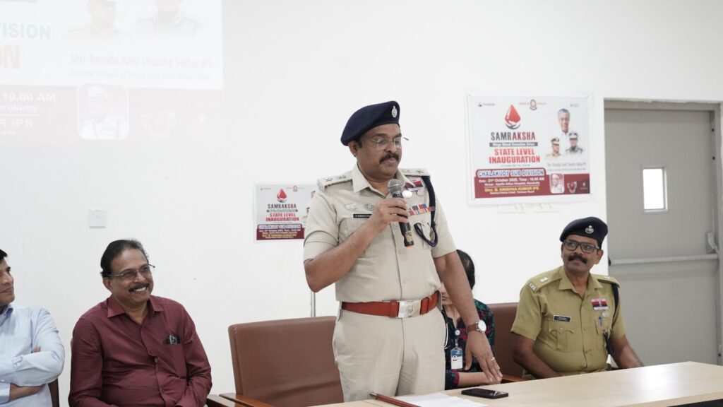 കേരള പോലീസിന്റെ 'സംരക്ഷ' രക്തദാന ക്യാമ്പിന്റെ തൃശ്ശൂർ റൂറൽ ജില്ലാ തല ഉദ്ഘാടനം തൃശ്ശൂർ റൂറൽ ജില്ലാ പോലീസ് മേധാവി ബി. കൃഷ്ണകുമാർ ഐ പി എസ് ആണ് ഇന്ന് കറുകുറ്റി അപ്പോളോ അഡ് ലക്സ് ആശുപത്രിയിൽ വച്ച് നിർവഹിച്ചത്. പ്രസ്തുത ചടങ്ങിൽ ചാലക്കുടി ഡിവൈഎസ്പി ബിജു കുമാർ കൊരട്ടി പോലീസ് സ്റ്റേഷൻ എസ് എച്ച് ഒ അമൃതരംഗൻ, എസ് ഐ മാരായ ഋഷിപ്രസാദ്, മുഹമ്മദ് മുഹ്സിൻ, ബിജു കെ കെ, ധനീഷ് പി ഡി, അപ്പോളോ അഡ് ലക്സ് ആശുപത്രി അധികൃതർ, ജനമൈത്രി സമിതി അംഗങ്ങൾ, മറ്റ് സന്നദ്ധ സംഘടനകളിലെ അംഗങ്ങൾ, നൈപുണ്യ കോളേജ് വിദ്യാർത്ഥി വിദ്യാർത്ഥിനികൾ, ചാലക്കുടി സബ് ഡിവിഷനിലെ വിവിധ പോലീസ് സ്റ്റേഷനുകളിലെ പോലീസ് ഉദ്യോഗസ്ഥർ എന്നിവർ പങ്കെടുത്തു