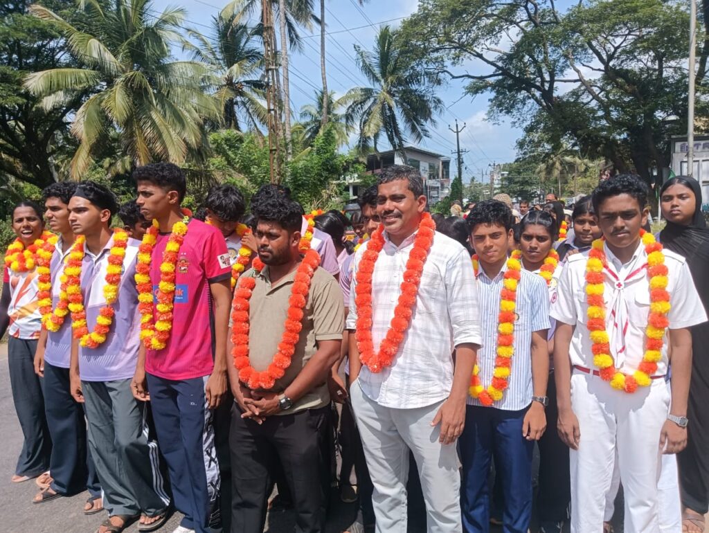 ആലത്തിയൂർ:സംസ്ഥാന സ്കൂൾ കായികമേളയിൽ അത്ലറ്റിക്സിൽ മികച്ച വിജയം നേടിയ ആലത്തിയൂർ കെഎച്ച്എം എച്ച്എസ്എസിലെ കായിക താരങ്ങളെയും സംസ്ഥാന തലത്തിൽ ശാസ്ത്ര മാഗസിനിൽ ഒന്നാം സ്ഥാനം കൈവരിച്ചവരെയും സംസ്ഥാന തലത്തിൽ ജൂനിയർ റെഡ് ക്രോസ് ക്വിസ് മത്സരത്തിൽ വിജയിച്ചവരെയും സ്കൂൾ മാനേജ്മെൻറും പി ടി എ യും വിദ്യാർഥികളും ചേർന്ന് ഉജ്ജ്വല സ്വീകരണം നൽകി.