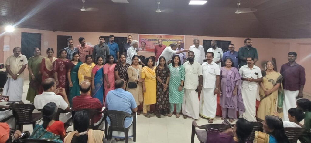 ചാലക്കുടി – മേലൂർ പഞ്ചായത്ത് LDF കൺവൻഷൻ മേലൂർ പള്ളിനട പഞ്ചായത്ത് ഹാളിൽ CPI ലോക്കൽ സെക്രട്ടറി സ: മധു തുപ്രത്തിൻ്റെ അദ്ധ്യക്ഷതയിൽ CPIM ജില്ലാ സെക്രട്ടറി സ: M Mവർഗ്ഗീസ് ഉൽഘാടനം നിർവഹിച്ചു ! സ : M S സുനിത സ്വാഗതം ചെയ്തു! മറ്റ് LDF നേതാക്കൾ ആശംസകൾ അർപ്പിച്ചു ! LDF സംഘാടക സമിതി രൂപീകരിച്ചു ! കല്ലുകുത്തിയിൽ LDF മുഖ്യ തെരഞ്ഞെടുപ്പ് കമ്മിറ്റി ഓഫീസ് ഉൽഘാടനം നിർവഹിച്ചു ! ജില്ലാ തല – ബ്ലോക്ക് തല – പഞ്ചായത്തിലെ 19 വാർഡുകളിലേയും സ്ഥാനാർഥികളെയും വേദികളിൽ പരിചയപ്പെടുത്തി! സ : N G സതീശൻ നന്ദി പ്രകാശിപ്പിച്ചു.