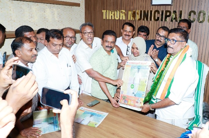തിരൂർ:നഗരസഭാ ചെയർമാനായി തെരഞ്ഞെടുക്കപ്പെട്ട കീഴേടത്തിൽ ഇബ്രാഹിം ഹാജിക്കും വൈസ് ചെയർപേഴ്സൺ സിന്ധു മംഗലശ്ശേരിക്കുമുൾപ്പെടെ 40 കൗൺസിലർമാർക്കും ആശംസ നേർന്ന് കൊണ്ട് സെഞ്ച്വറി നാസറിൻ്റെ ഉടമസ്ഥതയിലുള്ള “സെഞ്ച്വറി ന്യൂസ് “പുറത്തിറക്കിയ വാർത്താ പത്രിക പ്രകാശനം ചെയ്തു.