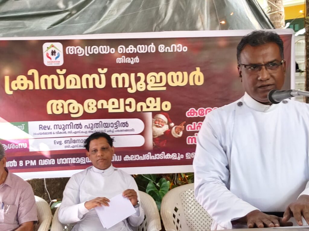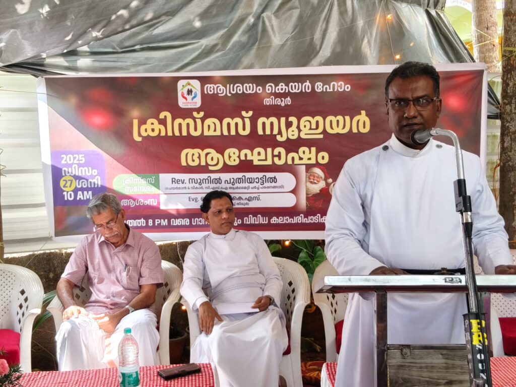 തിരൂർ :തിരൂർ ആശ്രയം കെയർ ഹോമിലെ ക്രിസ്മസ് പുതുവർഷ പരിപാടി ഇന്ന് 27.12.2025.ശനിയാഴ്ച വിവിധ പരിപാടികളോടെ, തിരൂർ സി. എസ്. ഐ. ചർച്ചിന്റെ നേതൃത്വത്തിൽ ആശ്രയം കെയർ ഹോമിൽ വച്ച് നടത്തി. ഇവാഞ്ചലിസ്റ്റ് ബിനോയ്. കെ.എസ്., സി. എസ്. ഐ ചർച്ച് തിരൂർ പ്രാർത്ഥനയോടെ പരിപാടിക്ക് തുടക്കം കുറിച്ചു. ആശ്രയം എന്ന സ്ഥാപനം എന്താണ് എന്നും, അതിന്റെ പ്രവർത്തനം എങ്ങനെയെന്നും പ്രദീപ് മാസ്റ്റർ വിവരണം നൽകി . ആശ്രയം ചെയർമാൻ കോയ മാസ്റ്റർ പുത്തുത്തോട്ടിൽ സ്വാഗതം പറഞ്ഞു. റവറന്റ് സുനിൽ പുതിയാട്ടിൽ ക്രിസ്മസ് സന്ദേശം നൽകി . ആശ്രയം ഭാരവാഹികളായ കബീർ മംഗലം, ഡോക്ടർ എം. എൻ. അബ്ദുൾറഹ്മാൻ, ദിലീപ് അമ്പായത്തിൽ,, വേണു കൽക്കട്ട, ഖാജാ ഷറഫുദ്ധീൻ, ലയൻ അസ്സൈനാർ എന്നിവർ ആശംസകൾ അർപ്പിച്ചു.