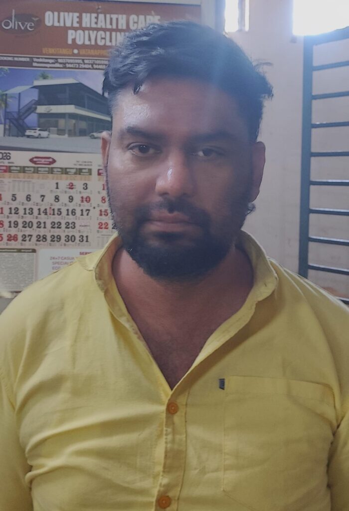 വാടാനപ്പള്ളി : 31-12-25 തീയതി രാത്രി 11.45 മണിയോടെ നടുവിൽ കര മായാനദി റിസോർട്ടിൽ ന്യൂ ഇയർ ആഘോഷങ്ങളുടെ ഭാഗമായി നടത്തിയ DJ പാർട്ടിയിൽ കപ്പിൾ പാസെടുത്ത് പങ്കെടുക്കാനെത്തിയ ഒല്ലൂർ സ്വദേശിയായ യുവാവിനും സുഹൃത്തായ യുവതിക്കും ഭക്ഷണവും മദ്യവും ലഭിക്കാത്തത് ചോദ്യം ചെയ്തതിലുള്ള വൈരാഗ്യത്താൽ പരിപാടിയുടെ സംഘാടകരായ പ്രതികൾ യുവാവിനെ ക്രൂരമായി ആക്രമിച്ച് പരിക്കേൽപ്പിച്ച സംഭവത്തിന് തളിക്കുളം പുളിയംതുരുത്ത് സ്വദേശി അന്തിക്കാട് വീട്ടിൽ മസിൽ കണ്ണൻ എന്നറിയപ്പെടുന്ന കണ്ണൻ 40 വയസ് എന്നയാളെയാണ് തൃശ്ശൂർ റൂറൽ പോലീസ് അറസ്റ്റ് ചെയ്തത്. നടപടിക്രമങ്ങൾക്ക് ശേഷം കോടതിയിൽ ഹാജരാക്കിയ പ്രതിയെ റിമാന്റ് ചെയ്തു.