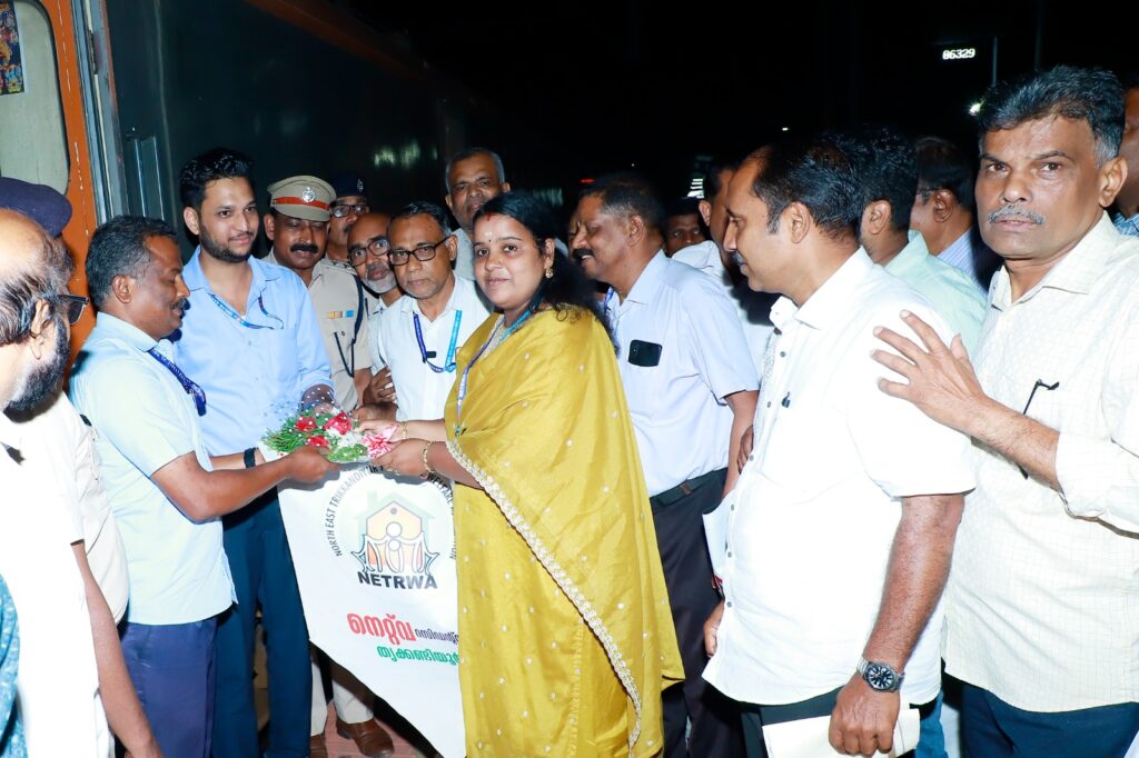 തിരൂർ : നോർത്ത് ഈസ്റ്റ് തൃക്കണ്ടിയൂർ റെസിഡൻസ് വെൽഫെയർ അസോസിയേഷൻ (നെറ്റ് വ) പ്രധാനമന്ത്രി നരേന്ദ്രമോദി തിരുവനന്തപുരത്ത് നിന്ന് ഫ്ലാഗ് ഓഫ് ചെയ്ത നാഗർകോവിൽ – മംഗളൂരു ജംഗ്ഷൻ അമൃത് ഭാരത് സൂപ്പർ ഫാസ്റ്റ് എക്സ്പ്രസ് ട്രെയിനിന് തിരൂരിൽ സ്വീകരണം നൽകി. തിരൂർ നഗരസഭ വൈസ് ചെയർപേഴ്സൺ സിന്ധു മംഗലശ്ശേരി ലോക്കോ പൈലറ്റ് മാരായ സുരേഷ്, അൻവർ എന്നിവർക്ക് ബൊക്കെ നൽകി സ്വീകരിച്ചു.