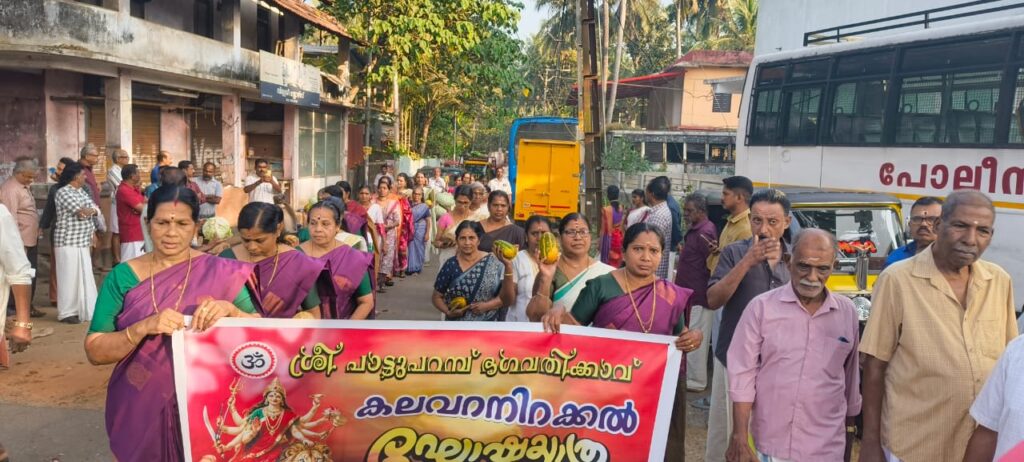 തെക്കുമുറി :തെക്കു മുറി പാട്ടുപറമ്പ് ഭഗവതിക്കാവ് ക്ഷേത്രോത്സവത്തിന്റെ ഭാഗമായി പോലീസ് ലൈൻ ചെന്തല വിഷ്ണു ക്ഷേത്രത്തിൽ നിന്ന് പാട്ടു പറമ്പ് അമ്പലത്തിലേക്ക് ഘോഷയാത്രയായി കലവറ നിറക്കൽ നടന്നു. നിരവധി ഭക്തജനങ്ങളും മാതൃ സമിതി അംഗങ്ങളും, നാട്ടുകാരും പങ്കെടുത്തു