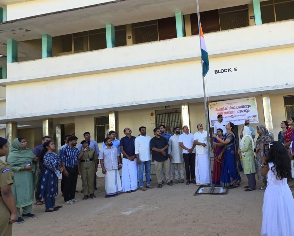 ആലത്തിയൂർ :രാജ്യത്തിന്റെ 77-ാം റിപ്പബ്ലിക് ദിനം ആലത്തിയൂർ കെ.എച്ച്.എം.എച്ച്.എസ്. സ്കൂളിൽ വിപുലമായ പരിപാടികളോടെ ആഘോഷിച്ചു. ആഘോഷ പരിപാടികളുടെ ഉദ്ഘാടനം പ്രിൻസിപ്പൽ സോണിയ സി. വേലായുധൻ ദേശീയ പതാക ഉയർത്തി നിർവ്വഹിച്ചു. ഭരണഘടനാ മൂല്യങ്ങൾ ജീവിതത്തിൽ പകർത്തുവാൻ ഓരോ വിദ്യാർത്ഥിയും സന്നദ്ധരാകണമെന്ന് അവർ ഉദ്ഘാടന പ്രസംഗത്തിൽ ഓർമ്മിപ്പിച്ചു.