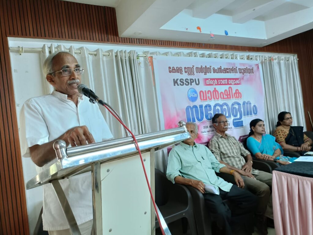 തിരൂർ :കേരള സ്റ്റേറ്റ് സർവ്വീസ് പെൻഷനേഴ്സ് യൂണിയൻ തിരൂർ ടൗൺ ബ്ലോക്ക് സമ്മേളനം സംസ്ഥാന സെക്രട്ടറി സി.ജി താരാനാഥൻ ഉദ്ഘാടനം ചെയ്തു. ജില്ലാ സെക്രട്ടറി നാരായണൻ മാസ്റ്റർ സംഘടനാ റിപ്പോർട്ടും ബ്ലോക്ക് സെക്രട്ടറി ബാബു മലോൽ പ്രവർത്തന റിപ്പോർട്ടും അവതരിപ്പിച്ചു.കെ.കെ ഗോപാലകൃഷ്ണൻ നായർ അദ്ധ്യക്ഷനായി. പെൻഷൻ പരിഷ്ക്കരണ നടപടികൾ ഉടൻ ആരംഭിക്കണമെന്ന് സമ്മേളം പ്രമേയത്തിലൂടെ സർക്കാറിനോട് ആവശ്യപ്പെട്ടു.