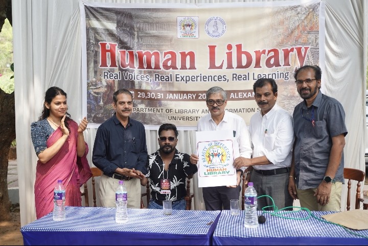തേഞ്ഞിപ്പലം : കാലിക്കറ്റ് സർവ്വകലാശാല:ശാസ്ത്രയാൻ 2026-27 നോടാനുബന്ധിച്ചു കാലിക്കറ്റ് സർ വ്വകലാശാല ലൈബ്രറി ആൻഡ് ഇൻഫർമേഷൻ സയൻസ് പഠന വകുപ്പ് സംഘടിപ്പിക്കുന്ന ഹ്യൂമൻ ലൈബ്രറി പരിപാടിക്ക് സർവ്വകലാശാല പാർക്കിൽ തുടക്കമായി.സർവ്വകലാശാല വൈസ് ചാൻസലർ പ്രൊഫസർ പി. രവീന്ദ്രൻ ഉദ്ഘാടനം ചെയ്തു. പഠന വകുപ്പ് മേധാവിയും സിൻഡിക്കേറ്റംഗവുമായ പ്രൊഫസർ മുഹമ്മദ് ഹനീഫ കെ അ ധ്യക്ഷത വഹിച്ചു.അജീഷ് ഐക്കരപ്പടി ഡിസൈൻ ചെയ്ത ഹ്യൂമൻ ലൈബ്രറി ലോഗോ സർവ്വകലാശാല വി സി പ്രകാശ നം ചെയ്തു. പ്രസ്തുത ചടങ്ങിൽ പ്രശസ്ത വ്ലോഗ്ഗറും മോട്ടിവേഷണൽ സ്പീക്കറുമായ ഷിഹാബുദീൻ സി.പി. വെല്ലുവിളികൾക്കിടയിലെ തന്റെ ജീവിതാനുഭവങ്ങളും വിജയകഥകളും വായനക്കാരുമായി പങ്കുവെച്ചു. ചടങ്ങിൽ പ്രൊഫസർ വാസുദേവൻ ടിഎം, ഡോ ശ്യാമിലി സി എന്നിവർ സംസാരിച്ചു.പരിപാടിയിടെ ആദ്യ മനുഷ്യ പുസ്തകമായി പ്രശസ്ത നർത്തകി വിപി മൻസിയ വായനക്കാരുമായി സംവദിച്ചു.