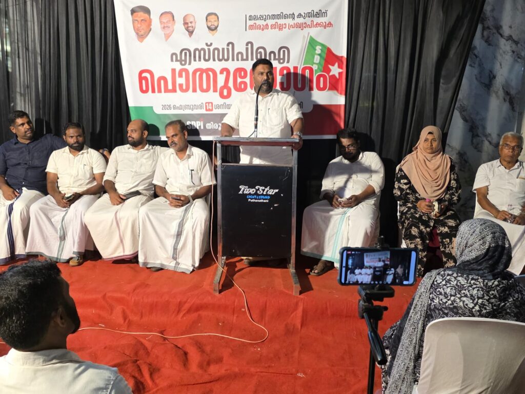ജില്ലാ വിഭജനത്തിന്റെ ആവശ്യതകയെ കുറിച്ചു കൊണ്ട് എസ് ഡി പി ഐ മലപ്പുറം ജില്ലാ സെക്രെട്ടറി മുസ്തഫ മാസ്റ്റർ മലപ്പുറം ജില്ല വിഭജനത്തിന്റെ ആവശ്യകതയെ കുറിച്ചും വിശദീകരണം നടത്തി. നൗഷാദ് എടക്കുളം, വിമൺ ഇന്ത്യ മൂവ് മെന്റ് സംസ്ഥാന സെക്രെട്ടറി റഹിയാനത്ത് സുധീർ, എൻ. പി ഷെരീഫ് സംസാരിച്ചു. കമ്മിറ്റി അംഗം . മണ്ഡലം പ്രസിഡണ്ട് നിസാർ അഹമ്മദ് അധ്യക്ഷ വഹിച്ച പൊതുയോഗത്തിനു മണ്ഡലം സെക്രെട്ടറി കെ സി സെമീർ സ്വാകതവും, മണ്ഡലം ട്രഷറർ എ. പി.ഹംസ നന്ദിയും പറഞ്ഞു.