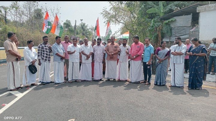 മായന്നൂർ കുത്താംബുള്ളി പാലത്തിന്റെ കാന ഒറ്റ മഴക്ക് തകർന്നതിൽ പ്രതിഷേധിച്ച് കൊണ്ടാഴി മണ്ഡലം കോൺഗ്രസ് കമ്മിറ്റിയുടെ നേതൃത്വത്തിൽ പാലത്തിനു സമീപം പ്രതിഷേധ സംഗമം നടത്തി. മണ്ഡലം കോൺഗ്രസ് പ്രസിഡന്റ് ടി സി വിനോദ് അധ്യക്ഷത വഹിച്ചു. ഡിസിസി ജനറൽ സെക്രട്ടറി പി സുലൈമാൻ ഉത്ഘാടനം ചെയ്തു. കോൺഗ്രസ് നേതാവ് ശിവൻ വീട്ടിക്കുന്ന് മുഖ്യ പ്രഭാഷണം നടത്തി. 34 കോടി രൂപ മുടക്കി പണിത പാലത്തിന്റെ നിർമാണത്തിൽ ഉദ്യോഗസ്ഥരുടെയും നിർമാണ കമ്പനിയുടെയും കടുത്ത അപാകതയാണ് ഉണ്ടായിട്ടുള്ളതെന്നും , വിദ്യാർത്ഥികൾ ഉൾപ്പെടെ നൂറു കണക്കിന് ആളുകൾ നടന്നു വരുന്ന പ്രദേശത്തെ ജനങ്ങളുടെ ആശങ്ക പരിഹരിക്കണമെന്നും നിർമാണത്തിന്റെ ഗുണനിലവാരം പരിശോധിച്ച് കുറ്റക്കാർക്കെതിരെ നടപടി എടുക്കണമെന്നും വിജിലൻസ് അന്വേഷണം നടത്തണമെന്നും മണ്ഡലം കോൺഗ്രസ് കമ്മിറ്റി ആവശ്യപ്പെട്ടു. ബ്ലോക്ക് കോൺഗ്രസ് കമ്മിറ്റി ഭാരവാഹികളായ ബിജു തടത്തിവിള, കെ സുദേവൻ, എം കെ അബ്ദുൾ റഹ്മാൻ. , അഡ്വ ജോസഫ് ആന്റണി, പഞ്ചായത്ത് മെമ്പർ എ ബി ബാലഗോപാൽ, മഹിളാ കോൺഗ്രസ് മണ്ഡലം പ്രസിഡന്റ് ബി കോമളം, വി നിഷമോൾ, പി സുജാത, ഉണ്ണികൃഷ്ണൻ കടമ്പാട്ട്, സി കെ ഉണ്ണികൃഷ്ണൻ, ഇ കെ മനോജ്, പി രാജേഷ്, കെ രാധാകൃഷ്ണൻ, സി എസ് പ്രവീൺകുമാർ തുടങ്ങിയവർ പങ്കെടുത്ത് സംസാരിച്ചു.