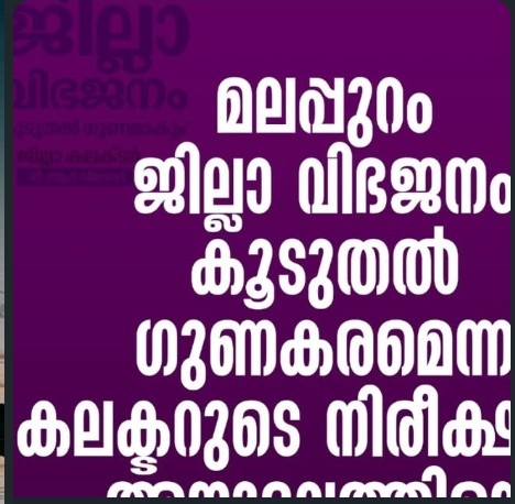 ജില്ലാ വിഭജനം ഏതെങ്കിലും കാലത്ത് ഗൗരവമായി പരിഗണിക്കപ്പെടേണ്ടി വരുമെന്ന വി.ആർ. വിനോദിന്റെ വാക്കുകൾ വികസനമുരടിപ്പ് നേരിടുന്ന മലപ്പുറത്തിന് പുതിയ പ്രതീക്ഷ നൽകുന്നതാണ്.