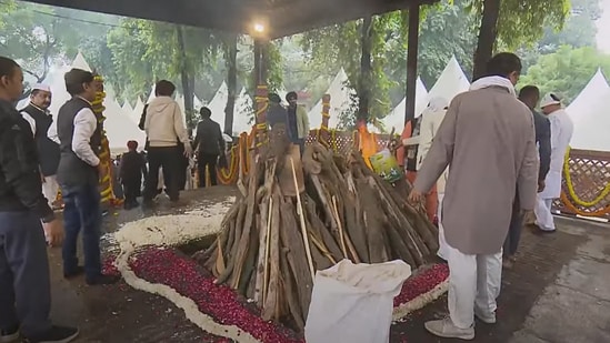 ന്യൂഡല്‍ഹി: യമുനാ തീരത്തെ നിഗംബോധ് ഘട്ടില്‍ മുന്‍ പ്രധാനമന്ത്രി മന്‍മോഹന്‍ സിങിന് അന്ത്യവിശ്രമം. പൂര്‍ണ ഔദ്യോഗിക ബഹുമതികളോടെയായിരുന്നു സംസ്‌കാരം. മൂത്തമകള്‍ ചിതയ്ക്ക് തീ കൊളുത്തി. രാവിലെ എഐസിസി ആസ്ഥാനത്ത പൊതുദർശനത്തിന് ശേഷം വിലാപയാത്രയായിട്ടാണ് സംസ്കാരം നടക്കുന്ന യമുനാ തീരത്തെ നിഗംബോധ് ഘട്ടിലേക്ക് മൃതദേഹം കൊണ്ടുപോയത്.